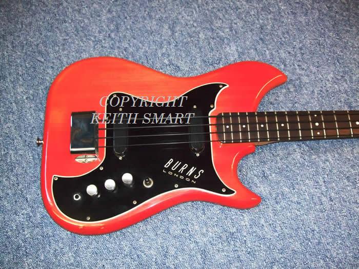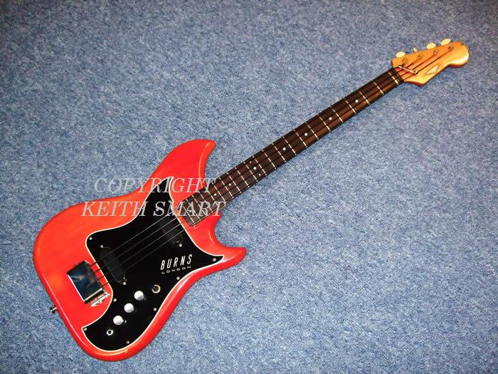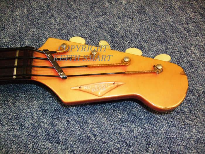1964 Burns Nu Sonic bass The Burns Nu Sonic bass was only available between 1964 and 1965. I had never seen one in the flesh (or wood) until recently. For a small bass it has a big sound and fast neck. Depending on who you believe, George Harrison used one with The Beatles on Dr Robert and also Paperback writer. Above : 1964 Burns Nu Sonic bass. George Harrison was reported as recording with one during the Paperback writer sessions. Below : This example still has the chrome bridge that is often missing. Above : Close up of the head stock. |